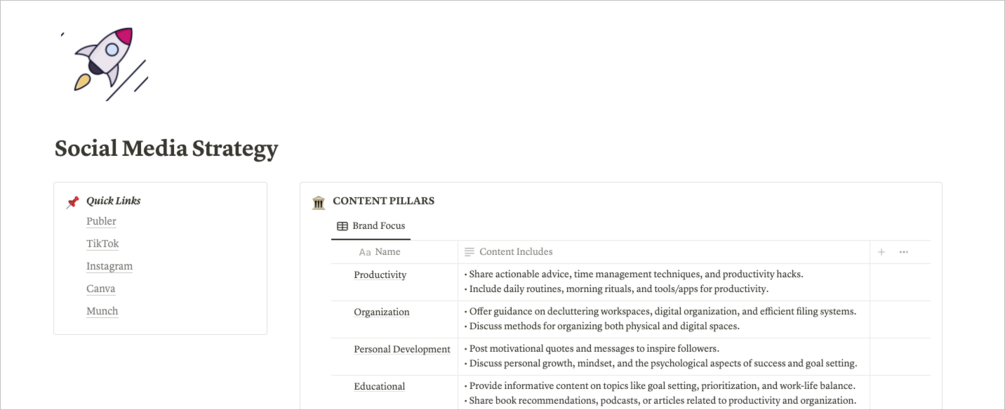 This Notion template will save you hours of planning and organizing, so you can focus on creating content that grows your brand. From content idea generation to publishing and tracking campaign success, this system helps you manage everything in one place—boosting your productivity and keeping you ahead of the game.